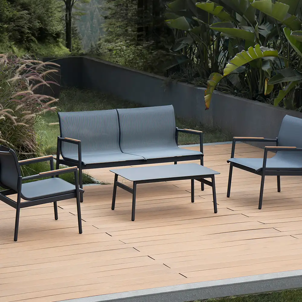 Una versión moderna de muebles de jardín con estilo europeo, esta colección cuenta con la cooperación del diseñador italiano Sr. Matteo Lualdi y el Sr. Matteo Meraldi. Sala Nora 2-1-1. Las siluetas lineales con tejido de cuerda contemporáneo hacen que la colección armonice con el espacio al aire libre tanto residencial como de hospitalidad. Ofrecemos sofá individual, love seat.